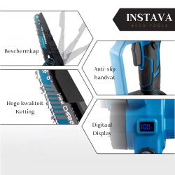 De Instava Mini Kettingzaag is perfect voor het precies en gemakkelijk zagen van takken dankzij het zaagblad van 20cm.