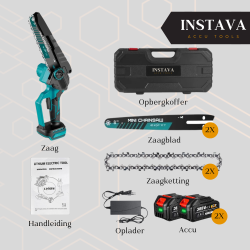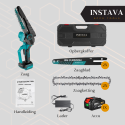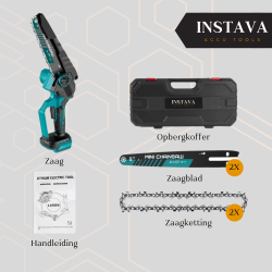 Niet alleen ontvang je de Mini Kettingzaag, maar ook een opbergkoffer waar de zaag in zijn geheel in past en handige accessoires voor nog meer gemak.
