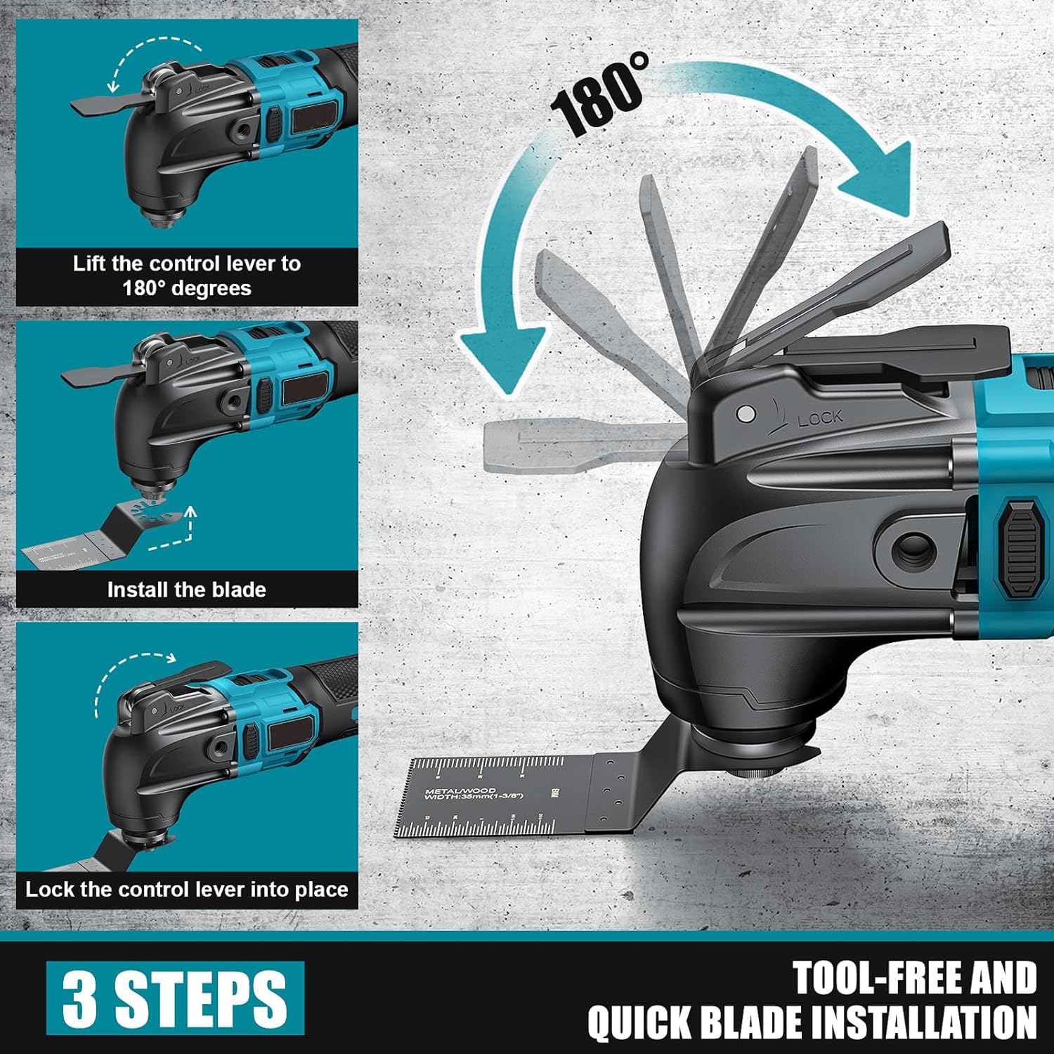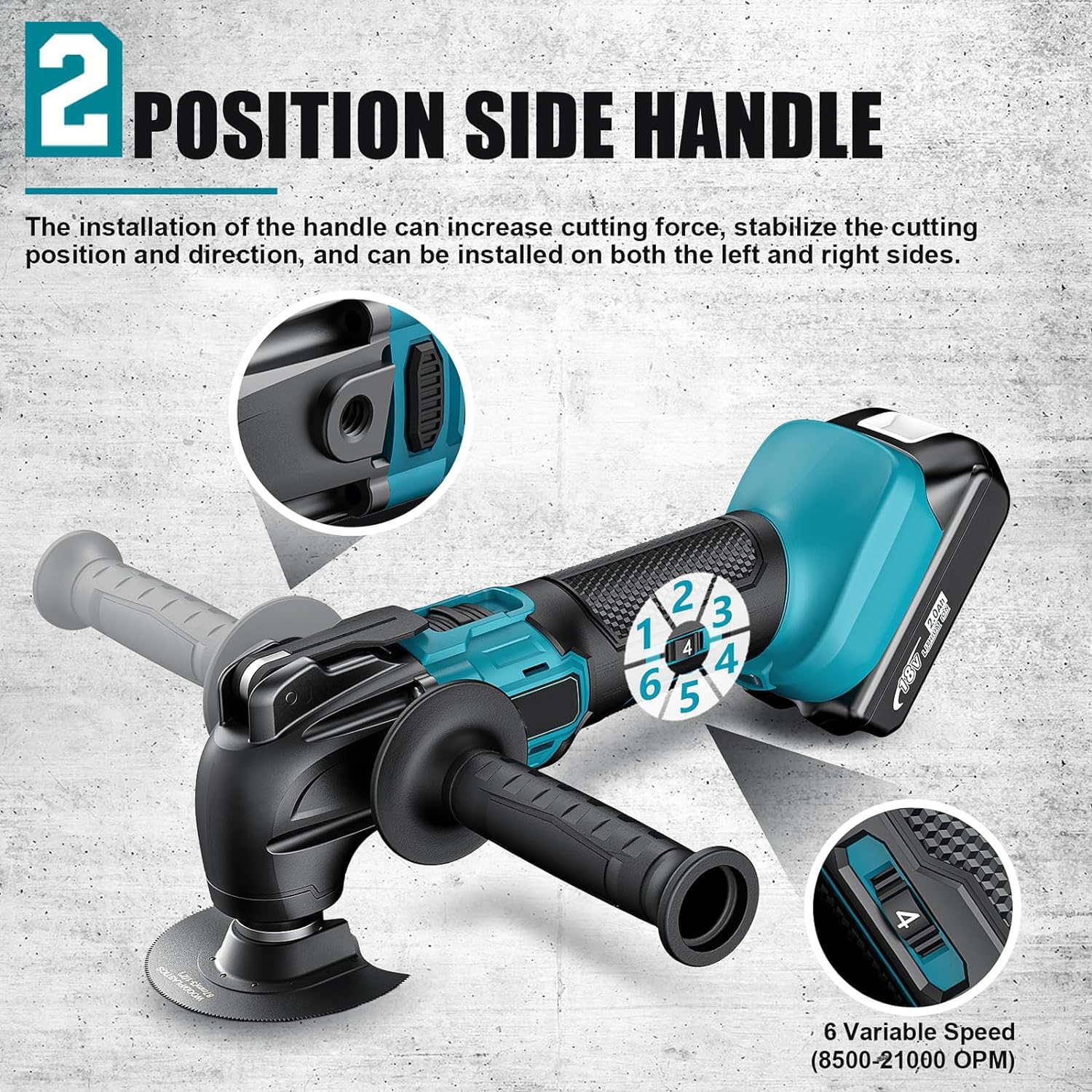 - 6 Aanpasbare Oscillatieniveaus: Voor nauwkeurige controle over elke taak, van delicate afwerkingen tot krachtig snijwerk.